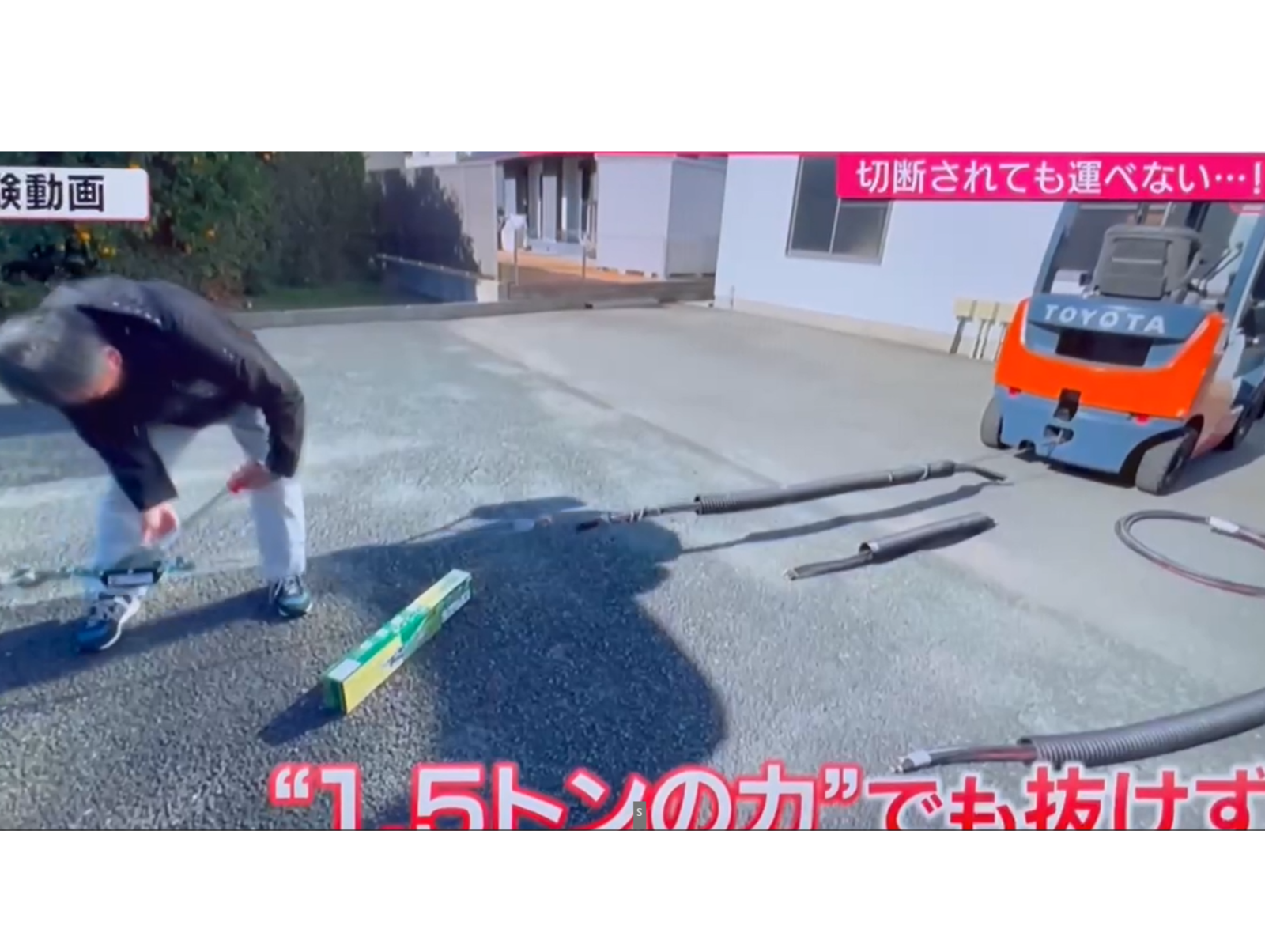 当社の実験にて1.5tの力で引き抜き実験を行いましたがビクともせず。大人6~7人でも引き抜けない強度で盗難を未然に防ぎます。
