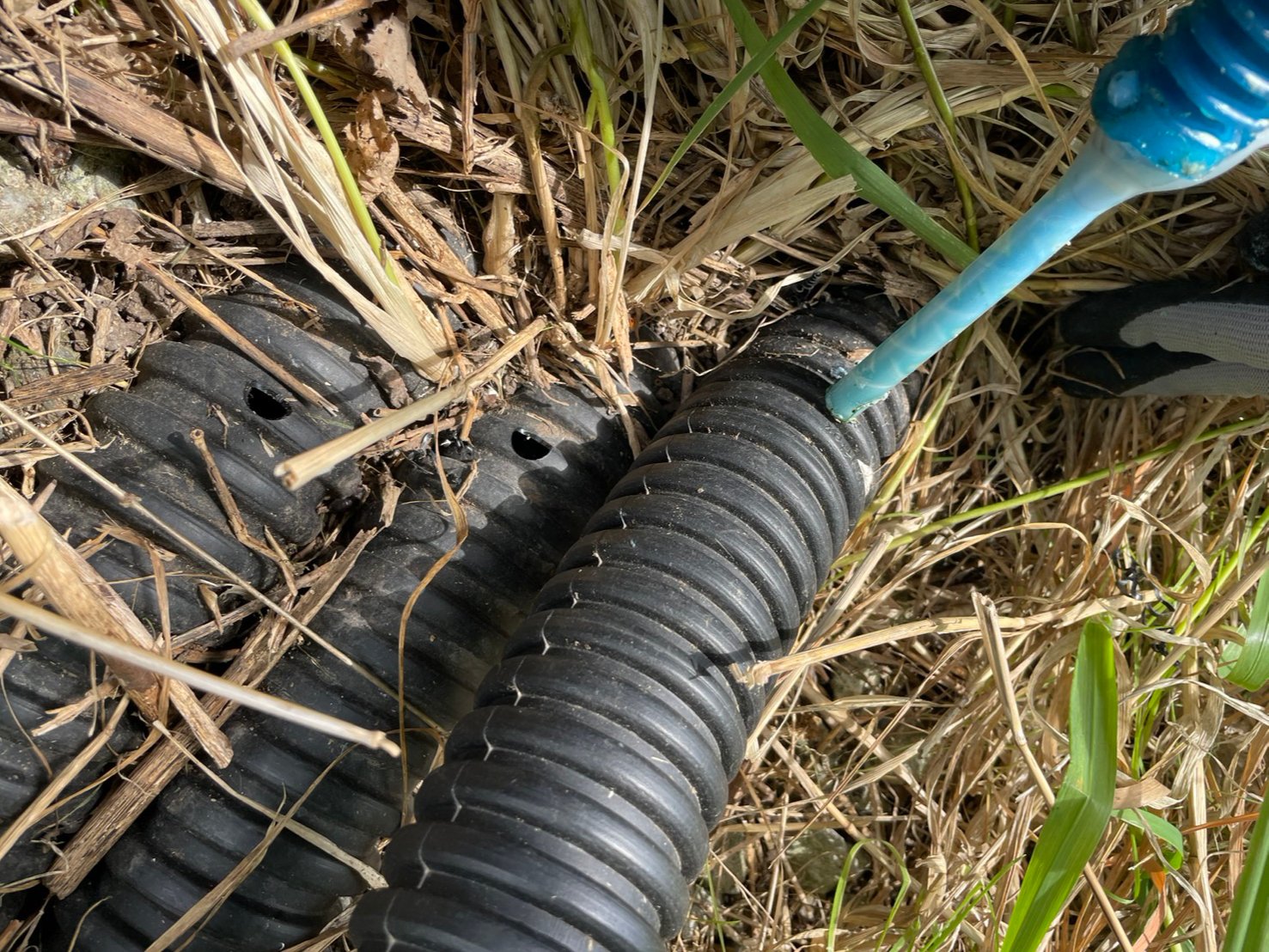 「固めてまもるくん」は、配管内のケーブルを特殊溶剤で固定し、物理的に引き抜けない状態を作る太陽光ケーブル盗難防止工事です。