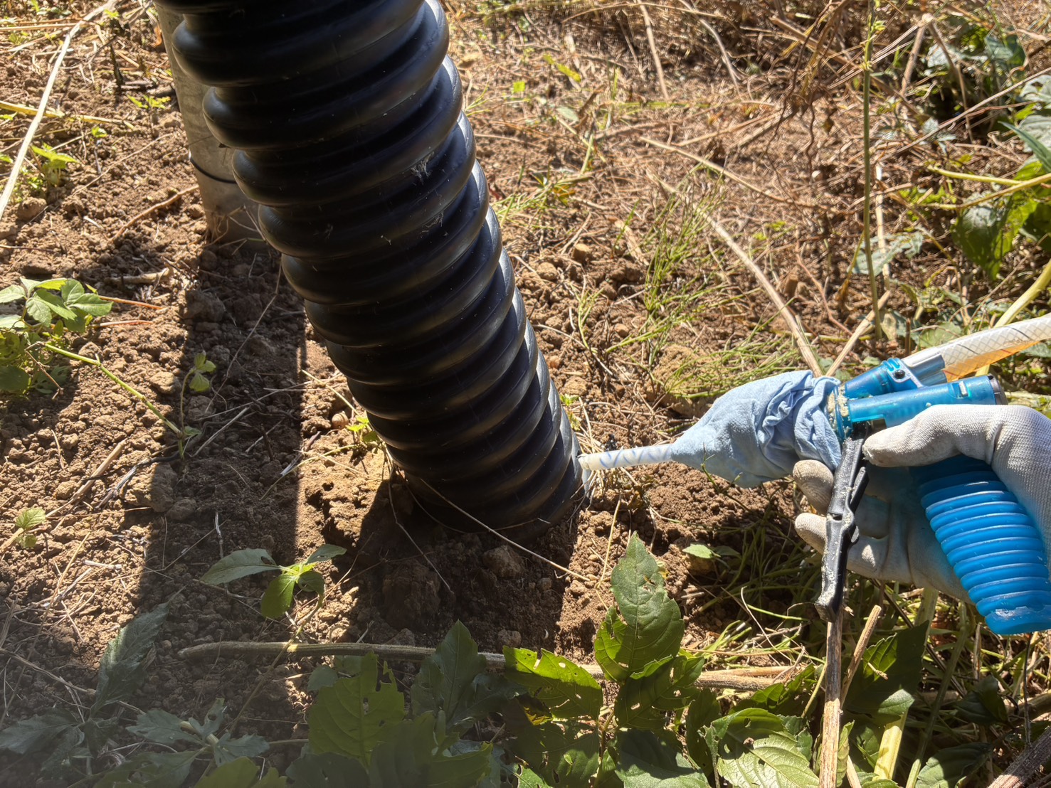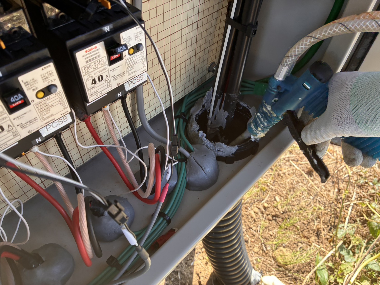 露出配管部も含めてしっかり固めることで、引き抜きがほぼ不可能な状態となりました。
