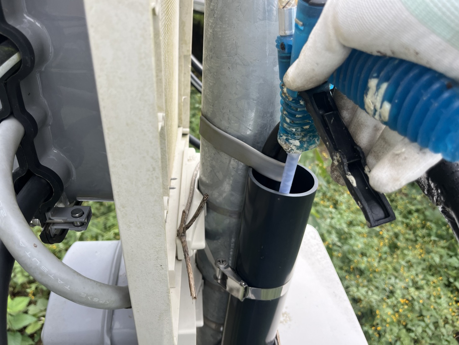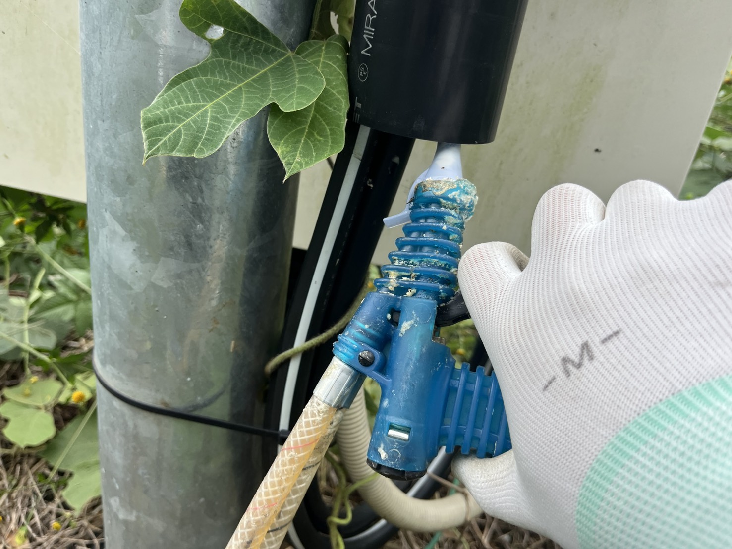 茨城県稲敷郡の太陽光発電所にて、ケーブル盗難防止対策「固めてまもるくん」を施工しました。