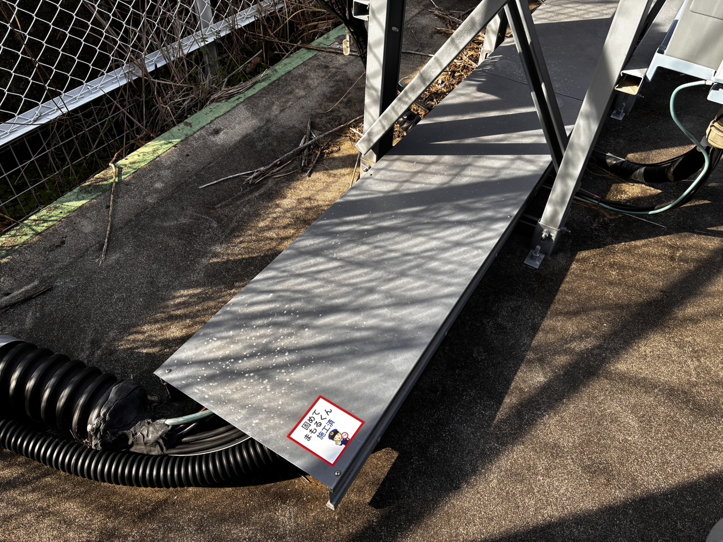 露出配管の発電所は、短時間で切断・持ち去りが可能なため、犯行グループに狙われやすい傾向があります。実際、高圧発電所でも「地中に埋まっていないケーブル」が被害に遭うケースは全国的に増えており、今回のオーナー様もその点を強く懸念されていました。